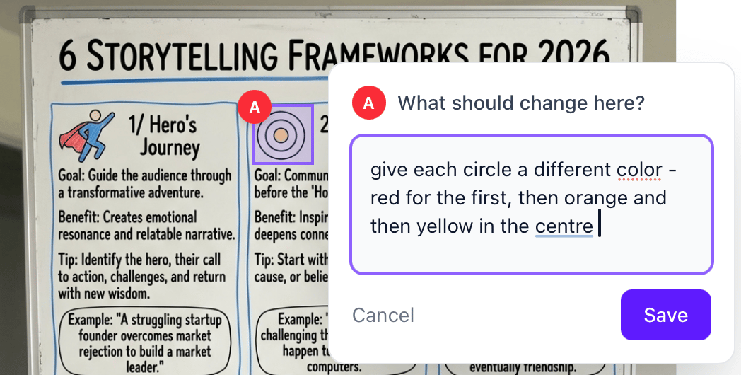 Go to Saywhat or Nano Banana Pro and add an example of an inspirational design. It could be an existing whiteboard visual you saw or another design. In Saywhat, pick your favourites from the inspiration section and save them as templates.
